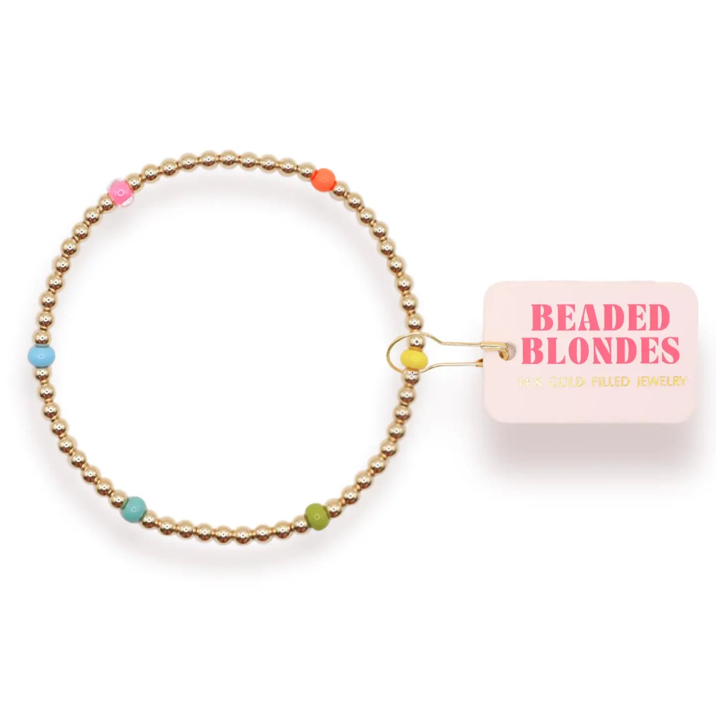 Beaded Blondes Charm Bracelet. Includes the charm + bracelet. Our signature 14 K gold filled beaded bracelets with a hollow light weight gold filled charm.