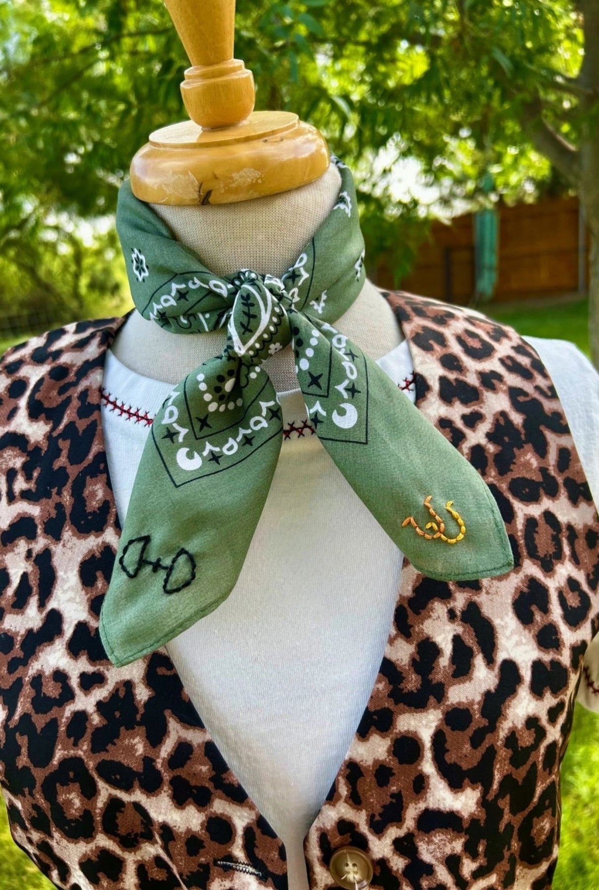 It’s all in the details. Each bandana is hand embroidered with love just for you. No two will be exactly the same. Our bandanas have hand drawn designs and hand embroidered. You can wear around your neck or in your hair. Tie one on your fav bag or around the neck of your pup.
