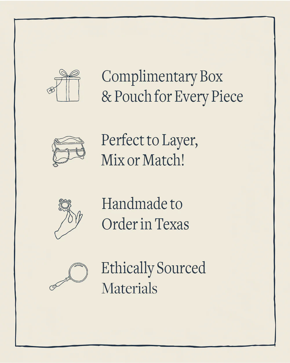Keep your pieces in premium condition by following a few simple tips. To clean jewelry, use a dry, clean cloth. Do not wear while swimming or showering. When not being worn, keep your pieces in our free keep size pouch that comes with every piece!
