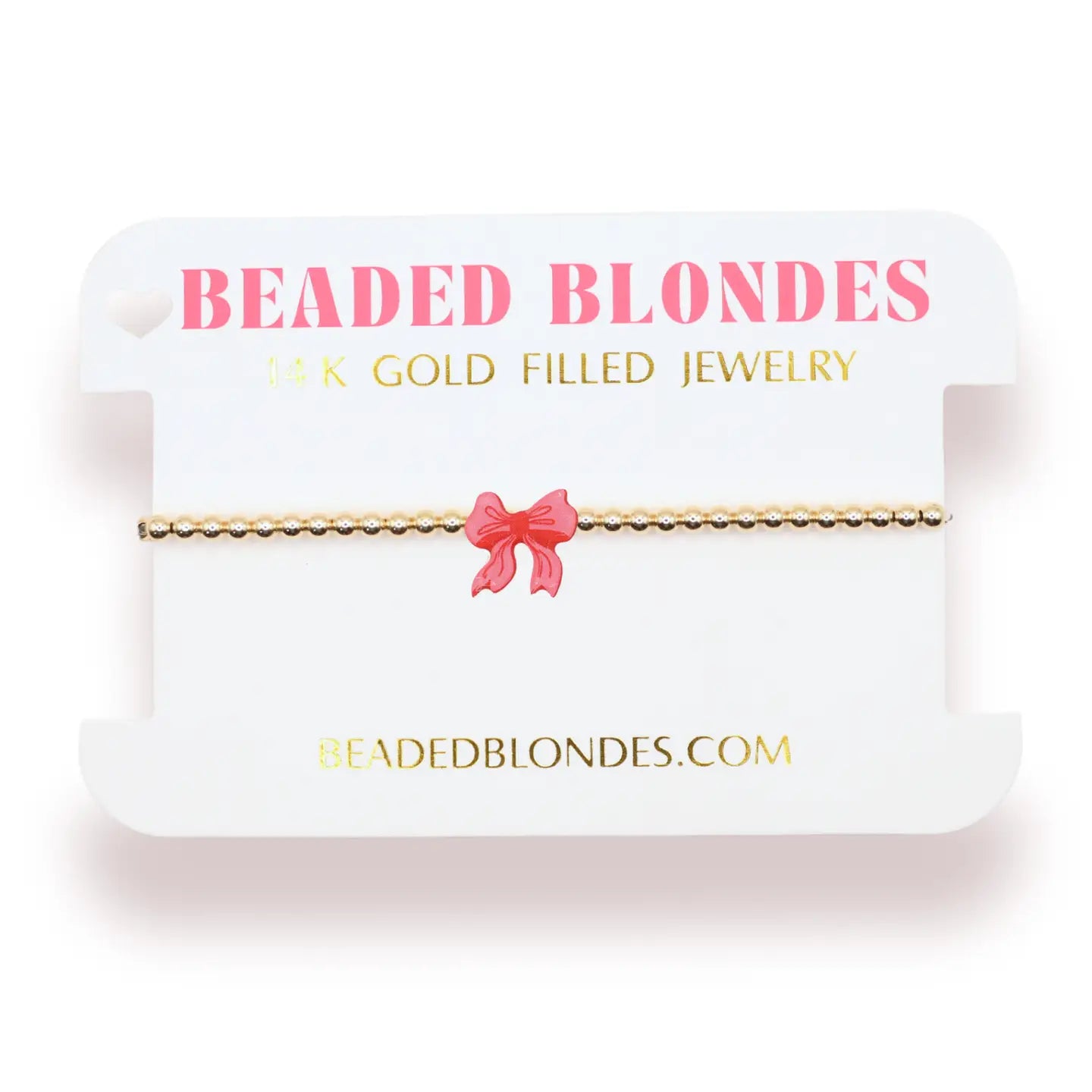 Part of the Beaded Blondes Holiday Collection. Our Red Bow Holiday Bracelet is available on gold or sprinkle making it perfect to add to your stack for the holidays.