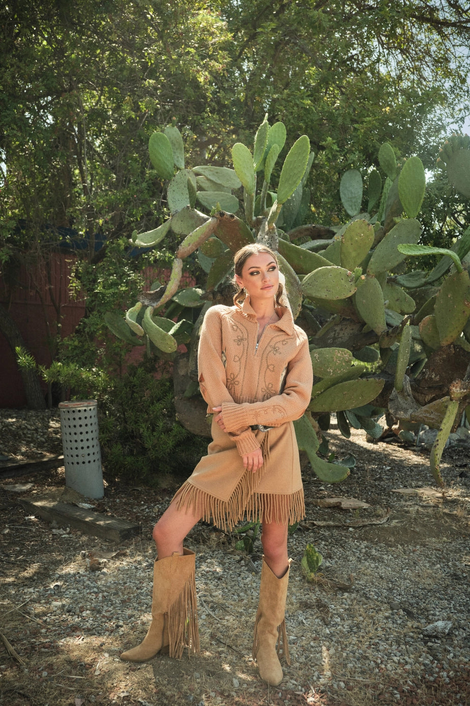 This sleeveless suede dress offers timeless style with a modern twist, featuring a full button-down front and a flattering, structured fit. The soft suede texture adds warmth and richness, making it perfect for layering or wearing solo for an effortlessly chic look.