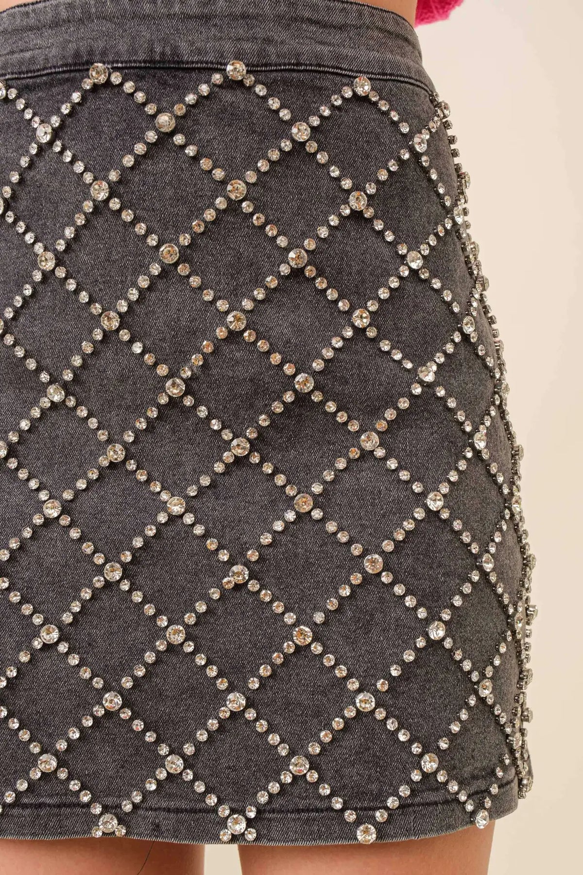 Elevate your wardrobe with this stunning denim mini skirt that seamlessly blends practicality with eye-catching glamour. The strategically placed back zipper offers effortless styling, while intricate rhinestone detailing transforms an everyday classic into a showstopping statement piece. Whether you're dressing up for a night out or adding edge to casual wear, this versatile skirt delivers the confidence and allure you deserve.