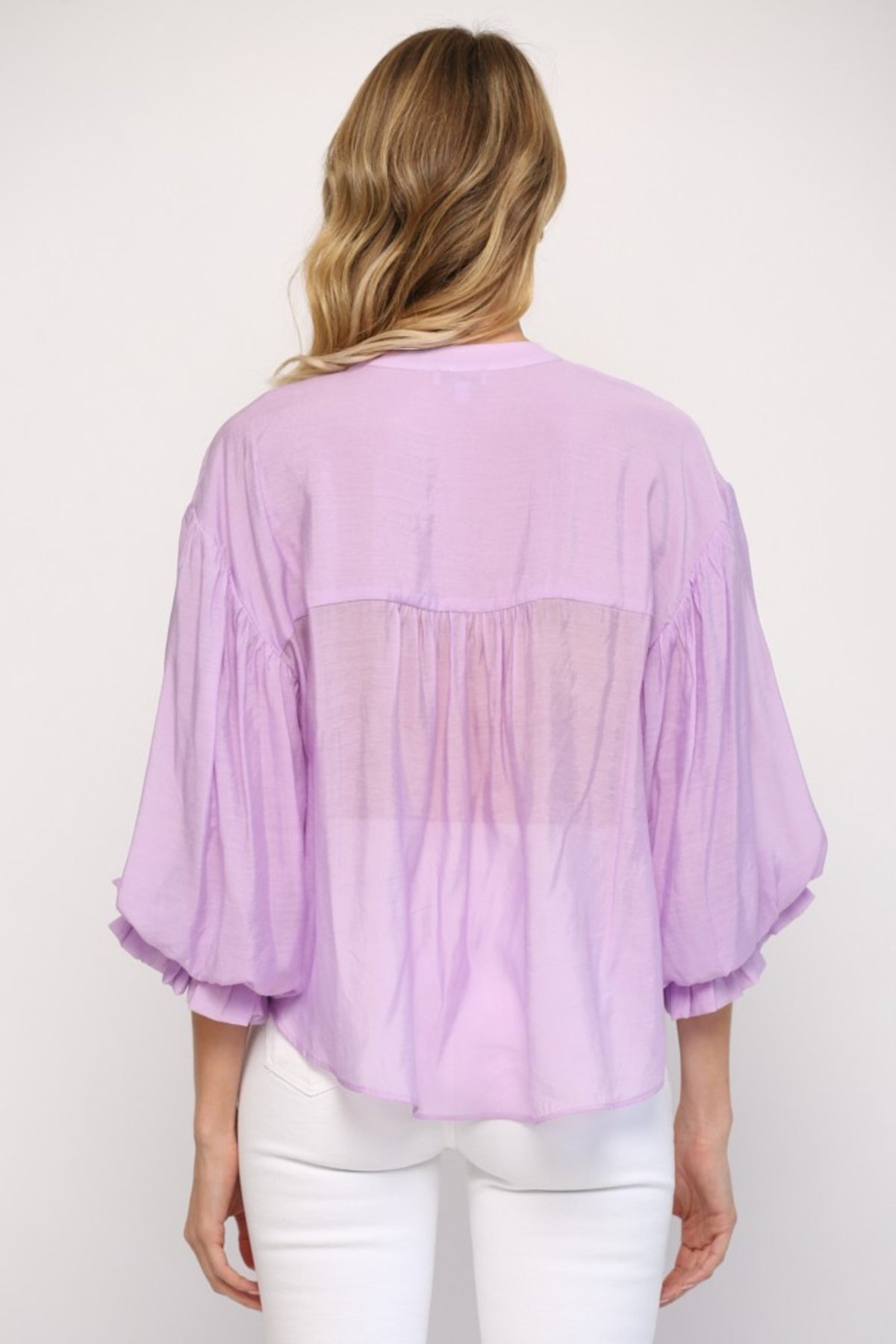 The Alicia Puff Sleeve Button Down Shirt in lavender combines romantic styling with everyday versatility. Featuring charming puff sleeves and a classic button-down design, this piece effortlessly transitions from work to weekend while keeping you feeling confident and polished.